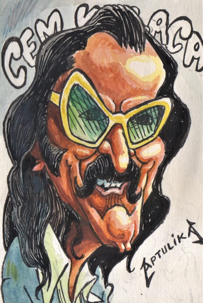 “Cem karikatür gibi bir herifti. Onu çizmek de kolay. Çizerlere hep diyorum, ‘Şu Cem Karaca hikâyelerini anlatalım, çizin,’ diye. Red Kit vücudu çizeceksin; üstüne fötr şapka, sakal, gözlük… Oldu sana Cem Karaca.”