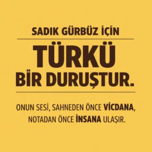 Sonra bir gün, o sahneden uzaklaştırılır. Hayat, insana yönünü değiştirmeyi öğretir. Sevdiği yerden koparılan biri ya susar ya da kendine yeni bir yol açar. Sadık Gürbüz için o yol türkü olur. Sazına sarılır. Türkü, insanın elinden alınamayan son sığınağıdır. Sahne kapanabilir. Kapılar yüzüne kapanabilir. İnsanın sesi kaldığı sürece, anlatacak bir yol hep vardır. O da o yolu seçer.