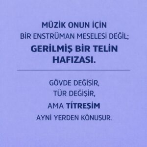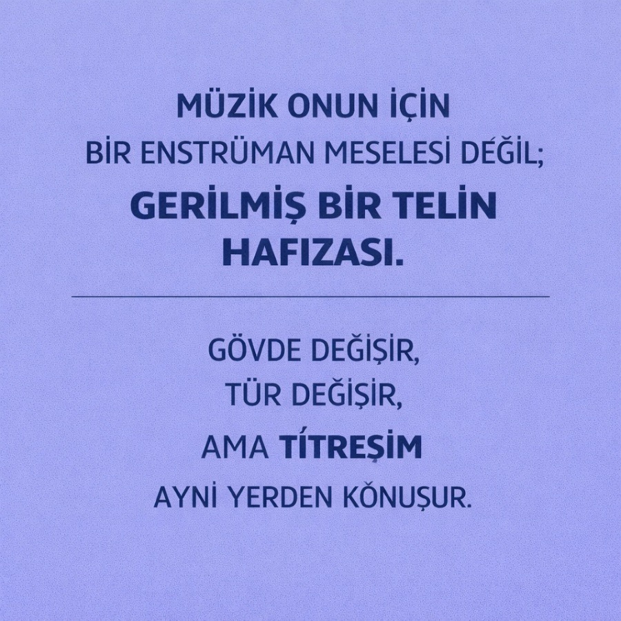 Formu önemseyen, geleneği tartışmaktan çekinmeyen ama onu içerden dönüştürmeye çalışan bir müzisyen o. “Telliciyim işte” derken mütevazı görünse de aslında söylediği daha derin: Türler geçici, etiketler kırılgan; geriye titreşim kalır.