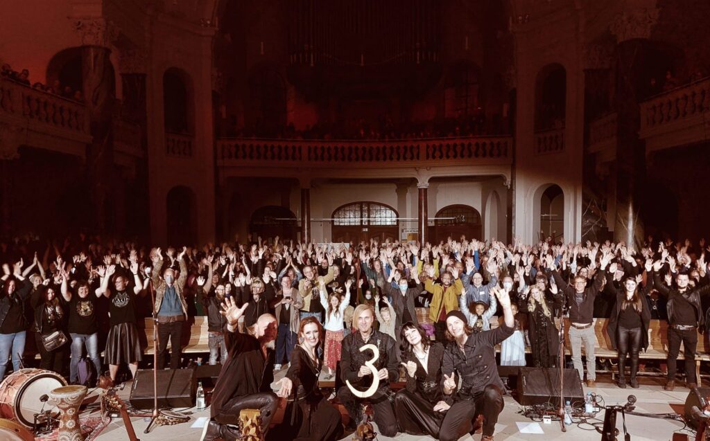 Gelelim ilk konsere, loş ışıklı sahneye ilk önce ekibin kendi deyimiyle “sihirli makinedeki adam”, grubun elektronik alt yapısında, modern elektronik dokunuşlarıyla harikalar yaratan Niel Mitra’nın makinenin arkasında hafif sisle çıkması ve kendine has, müzikle uyumlu, el hareketlerini içeren şovuyla başlıyor. Sonrasında sırasıyla; geleneksel enstrümanları etkileyici çalışı ve vokaliyle dikkat çeken Stephan Groth, üflemeli geleneksel enstrümanlarda harikalar yaratan kadın vokallerden Adaya De Bairacli Levy, sahnedeki duruşu, güçlü sesi, kıvrak, naif bel danslarıyla dikkat çeken diğer kadın vokal Laura Fella, vurmalı çalgılarda, canlı performansta çok güçlü Rüdiger Maul ve en son olarak grubun kurucu üyesi, kalbi, temel taşı, şarkı yazarı Oliver Satyr sahneye çıkıyor ve görsel şölen başlıyor.