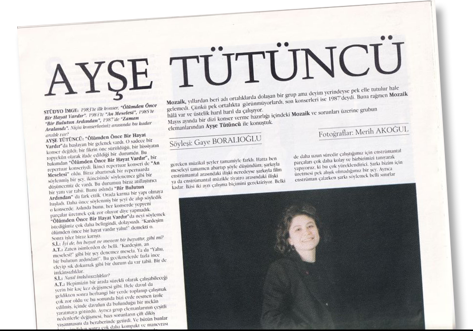 Sevgili Orhan Kahyaoğlu ve Burak Eldem’in unutulmaz Mozaik röportajı… Burak, Orhan, Serdar, Ayşe, Bülent ve ben 25 yaşındayız. Bildiğiniz genciz yani. 80 darbesi üstümüzden geçmiş; yolunu bulmaya, savrulmamaya, sisteme yem olmamaya, dahil olmamaya çalışan şaşkın gençleriz. Ama şimdiye kadar saydığım isimlere bakarsak, sisteme pek de yem olmamışız.