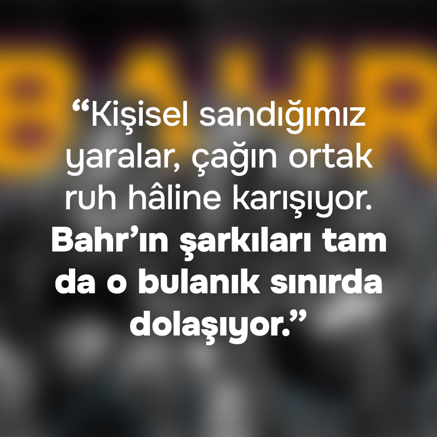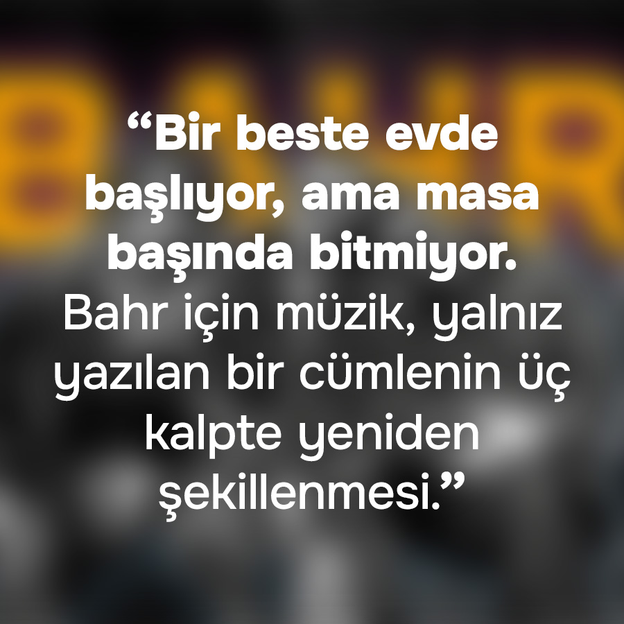 İsimleri kısa ama anlam katmanları derin: “Bahr” hem göçmen bir kelime hem suyun ve derinliğin çağrışımı hem de güçlü bir varlık hissi. Müzikleri de öyle… Şarkılarında ev, aidiyet, kaçış, göç, hiddet ve kabul iç içe geçiyor. İngilizce sözler, bilinçli bir estetik tercih kadar bir ifade özgürlüğü alanı da açıyor onlara.
