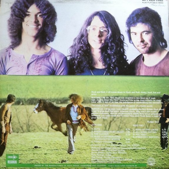 Black Sabbath grubunun ilk üç albümünün prodüktörlüğünü üstlenen Rodger Bain’in kanatları altına giren üçlü, Blues odaklı Hard Rock sound’una sahip ilk şarkılarını Rockfield Stüdyoları’nda kaydedip, kendileriyle aynı ismi taşıyan albümleri Budgie’yi 10 Temmuz 1971 yılına MCA Records etiketiyle yayınlamışlardı. Budgie ticari kalıplardan olabildiğince uzak, ilkel, çiğ ve gürültülü bir ses örgüsüne sahip. Grubun kariyeri boyunca çıkardığı on stüdyo albümü içerisinde farklı bir yerde ve adeta dinamiti ateşleyen ilk kıvılcım niteliğinde. Her iki yüze eşit olarak dağıtılmış dört şarkıdan ve toplamda 40 küsur dakikadan oluşan ses bombardımanında tüm sözler ve müzikler ekibe, yani Shelley-Bourge-Philips üçlüsüne ait. İkisi hariç tüm şarkılar o dönemde Hard Rock yapan diğer grupların şarkılarına kıyasla daha uzun sürede.