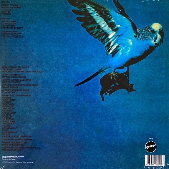 Melodi Plak lisansıyla imal edilen longplay’in arka kapağında üçlünün gülümsediği klasikleşmiş fotoğraf kullanılmış. Budgie albümü öncesinde az önce bahsi geçen Crash Course 45’liği piyasaya sürülmüş yine Melodi Plak tarafından. Elimde hâlâ bu 45’lik plak yok maalesef ama albümün 2004 tarihli remastered cd versiyonuna bu harika şarkı da eklenmiş.