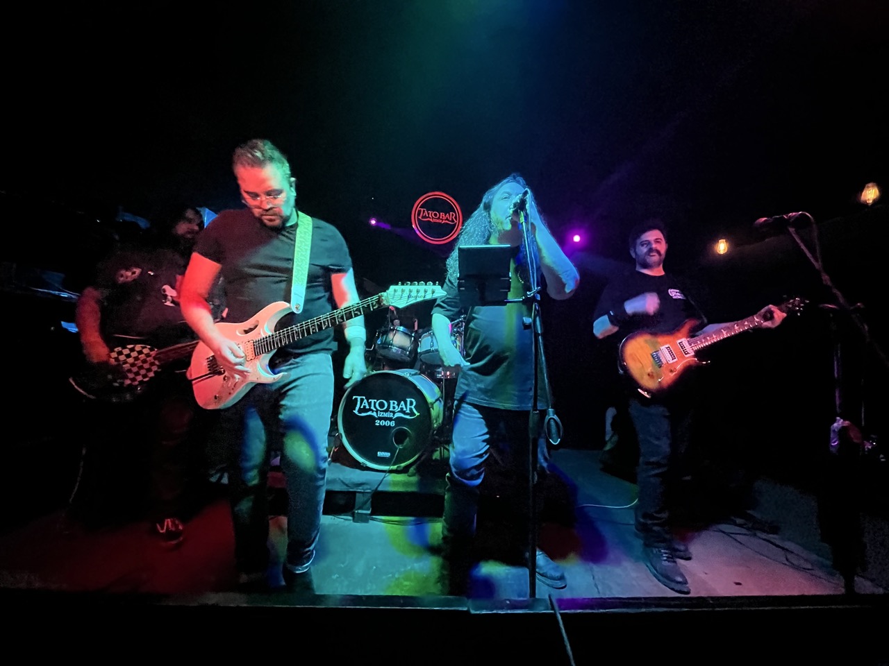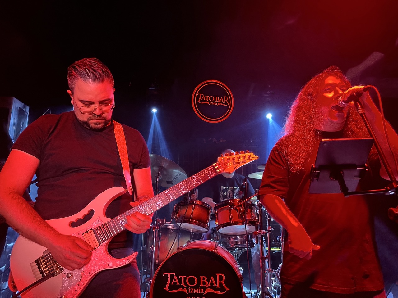Orçun: 2021 civarıydı sanırım, İsviçreli Sin Starlett adlı Heavy Metal grubunu dinlerken o kadar gaza geldim ki, “benim de bir grup kurmam lazım” dedim, bir anda geldi bu. Alsancak’ın ortasındayım, yağmur yağıyor… Taylan’la arada konuşuyoruz “İleride bir Heavy Metal grubu kurar mıyız?” diye, yılmışız çünkü Progresif çalmaktan. Şöyle “kökten dinci” bir Heavy Metal grubu kuralım mı diye konuşuyorduk, sonunda arayıp bu defa ciddi sordum, kafamda kadro da belliydi. Sonra sırayla her bir üyeyi aradım, Emre’yi (Dağaşan, gitar) mesela, “Tamam” dedi. Cenk’i (Limni, davul) aramadım bile zaten, elimizin altında olduğu için, çünkü Kargaşa projesinde beraber çalıyorduk. Öyle başladık, Taylan da gitar çalmak istedi, pek arası olmadığı halde.