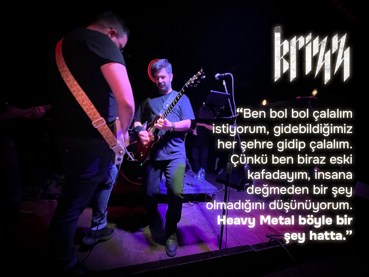 Orçun: Ben bol bol çalalım istiyorum, gidebildiğimiz her şehre gidip çalalım. Çünkü ben biraz eski kafadayım, insana değmeden bir şey olmadığını düşünüyorum. Yani önemsizleştirmek için söylemiyorum da Instagram’a reklam vererek filan insanlara ulaşmak benim içime sinmiyor. Ben kalkıp bir Queen söylediğim videoyu koyamıyorum ya da Taylan’ın çok sevdiği bir şarkının solosunu attığı videoyu koymuyoruz, anlamlı da bulmuyoruz. O yüzden insana değmek önemli bence. Heavy Metal böyle bir şey hatta. Ben kişisel olarak çok fazla çalalım istiyorum, bu mümkün olsun. Türkiye’deki her şehre gidelim, ikinci üçüncü defa gidelim, gerçekten bunu istiyorum, benim hayalim bu Krizz ile ilgili.